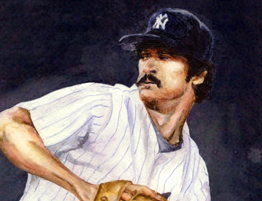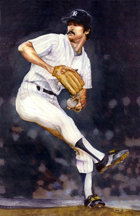 Illustration of New York Yankees pitching great, Ron Guidry to celebrate the retirement of his uniform #49 - Watercolor, 11" X 17"