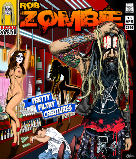 Comic book cover design for a tour tee for Rob Zombie's Venomous Rat tour - Adobe Photoshop & Illustrator