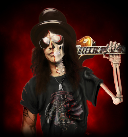 Illustration of Slash used on a tour tee for his "Apocalyptic Love" tour - Adobe Painter & Adobe Illustrator