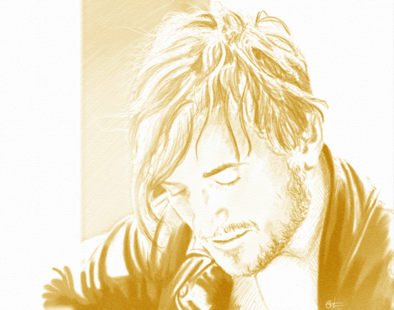 Illustration of Butch Walker - Adobe Photoshop (printed in gold ink on white paper)