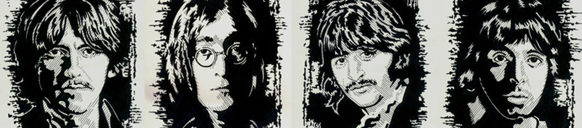 Commissioned set of 4 illustrations of the Beatles from the Let it Be era - Pen & Ink, 11" X 14"(each)