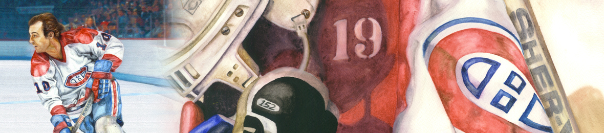 Set of water color illustrations featured on Canadiens.com of a still life of Canadiens items, & the great Guy Lafleur - Watercolor, various sizes