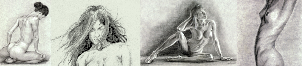 Figure studies from live models - Pencil & White Chalk, Various Sizes
