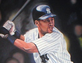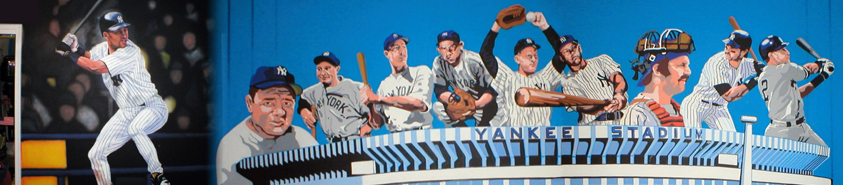 Full room mural featuring the New York Yankees. The mural includes a larger than life sized Derek Jeter, a collage of Yankee Greats, as well as the classic tophat logo & pinstripes.